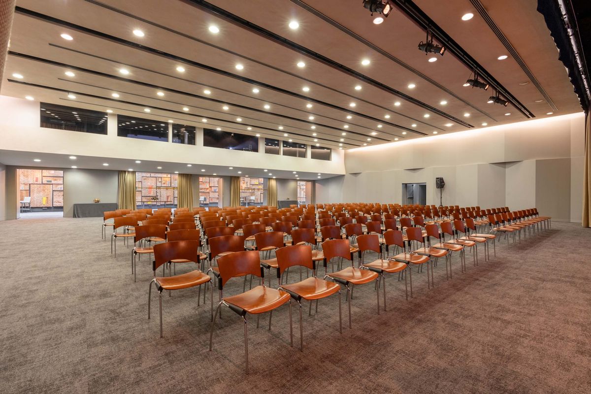 A maior sala do Centro de Congressos garante a realização de eventos com recurso a camarins, armazéns de apoio, cabines de tradução simultânea, iluminação cénica, régie de som, comunicação de cena e projeção de imagem.