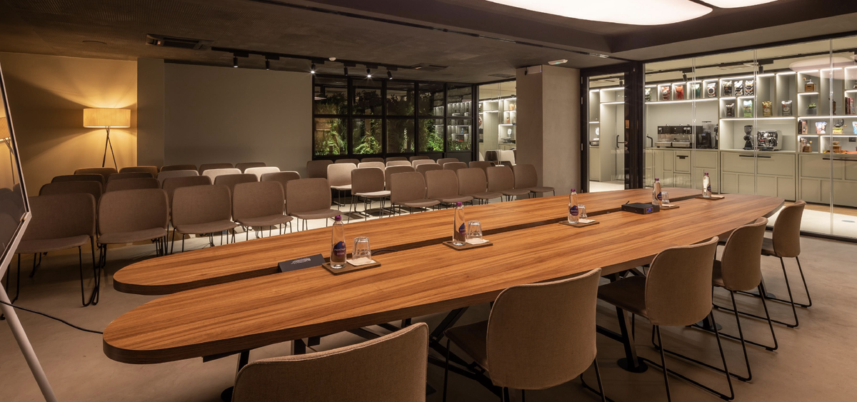 A BLEND é onde tudo se junta; ideias, pessoas e energia. Um anfiteatro versátil com capacidade para até 50 pessoas, perfeito para talks, formações, lançamentos ou sessões inspiradoras. Equipado com ecrãs de projeção e microfone.