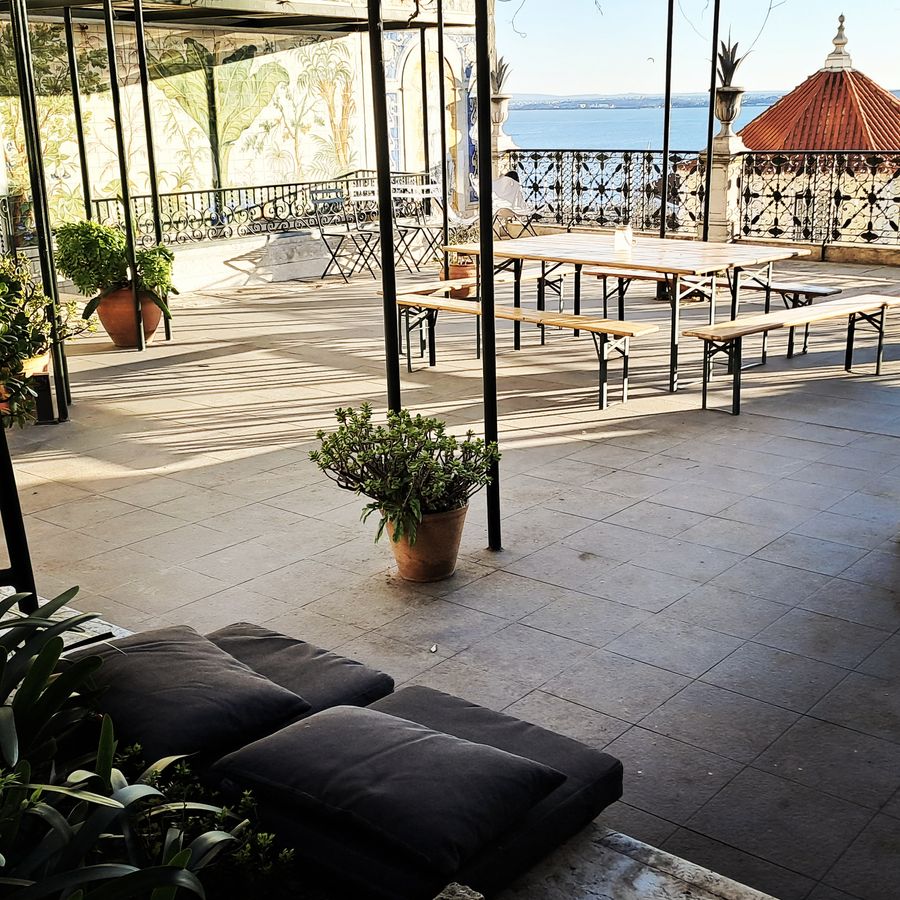 Espaço exterior para 30 pessoas sentadas com uma vista fantástica e no interior um espaço amplo dividido em 2 ambientes permitindo um auditório para 50 pessoas sentadas e uma sala com uma mesa de reuniões para 10 pessoas.