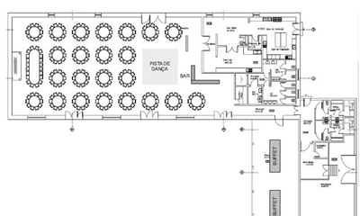 Espaço interior com capacidade para 300 pessoas, tendo uma área de aproximadamente 400m2. Dispõe também de um pátio exterior com uma área de 670m2, dos quais 116m2 são cobertos por um alpendre. Ideal para qualquer tipo de eventos.